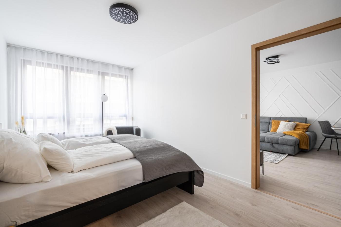 One-Bedroom Apartment. This apartment comprises 1 living room, 1 separate bedroom and 1 bathroom with a bath and a hairdryer. Meals can be prepared in the well-fitted kitchen, which comes with a stovetop, a refrigerator, a dishwasher and kitchenware. Featuring a terrace with ancourtyard view, this apartment also provides soundproof walls and a flat-screen TV with streaming services. The unit offers 2 beds.