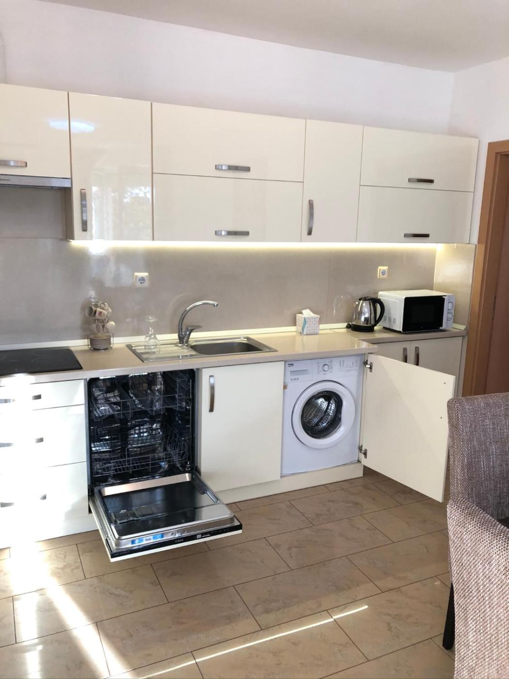 Two-Bedroom Apartment. Featuring a private entrance, this air-conditioned apartment comprises 1 living room, 2 separate bedrooms and 1 bathroom with a bath and a shower. Guests can make meals in the kitchen that comes with a stovetop, a refrigerator, a dishwasher and kitchenware. The spacious apartment provides a flat-screen TV with streaming services, a washing machine, a tea and coffee maker, a seating area as well as garden views. The unit offers 4 beds.
